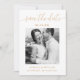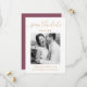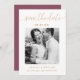 Este simples Casamento Salve a Data apresenta uma bela caligrafia dourada e uma foto-frame na frente com um rosa-burlu escuro de volta.