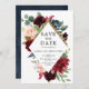 Lindos convites de casamento boho floral salvos apresentam gráficos florais pintados à mão em tons ricos de vermelho Borgonha Marsala azul naval e rosa / pêssego e fonte de estilo de letra à mão encantadora. Por favor, entre em contato comigo para qualquer ajuda na personalização ou se você precisar de qualquer outro produto com este design.