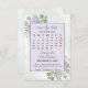 Este casamento para salvar o cartão de data é simples, rústico, elegante e bonito. Apresenta um calendário personalizável com um coração à volta da data do seu casamento, num quadro claro roxo ou lavanda rodeado por um bando de folhas de cor d'água pintadas manualmente, de eucalipto e flores lavandas, num fundo de cinzas azul empoeirado. O título diz: Salve a Data na caligrafia de script lacy com espaço para os nomes do casal, a data e o local. A parte traseira tem um pequeno buquê amarrado com um arco branco. Uma maneira maravilhosa de deixar seus amigos e família saberem sobre seu próximo casamento.