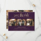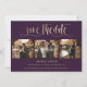 Cartões salve a data de fotos de púrpura elegante e casamento dourado com um moderno título de roteiro de folha de ouro falso. Personalize facilmente este casamento roxo, salve a data com suas imagens e detalhes de casamento, incluindo um site de casamento.