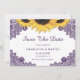 Casamento elegante de roxo rústico e girassol, exceto o cartão de data com flores de girassol e rendas florais roxas. Corações buracos nas costas. Itens correspondentes disponíveis para complementar este romântico casamento roxo, salve o cartão de data.