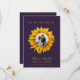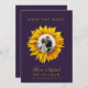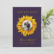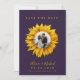 Casamento elegante salve o cartão de data que contém um girassol amarelo de ouro com seu dentro de foto, os nomes da noiva e do noivo, data e site sobre um fundo roxo. ++++++++ Adequado para o moderno país rústico Verão ou outono no exterior quintal, jardim, celeiro ou casamentos agrícolas. +++++ Observe que as cores podem ser alteradas. Se precisar personalizá-lo em uma cor específica de texto e/ou fundo, entre em contato com o designer através do botão MENSAGEM abaixo.