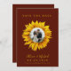 Casamento elegante salve o cartão de data com um girassol amarelo de ouro com seu dentro de foto, os nomes da noiva e do noivo, data e site sobre um fundo burgundy. ++++++++ Adequado para o moderno país rústico Verão ou outono no exterior quintal, jardim, celeiro ou casamentos agrícolas. +++++ Observe que as cores podem ser alteradas. Se precisar personalizá-lo em uma cor específica de texto e/ou fundo, entre em contato com o designer através do botão MENSAGEM abaixo.