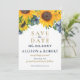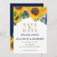 Casamento Russo de Girassol Azul, Marinho de Água, guarde os cartões de data. Design De Casamento Russo De Girassol Dourado Azul Com Buquê De Girassóis E Flores Azuis Marinhos, Linda Combinação de Marinhos e Amarelo para Casamento Tóquico Rústico ou Casamento De País.
