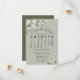 Este belo cartão de encontro vai avisar seus amigos e família sobre seu próximo casamento. Apresenta um elegante design de bolos com um calendário personalizável do mês do seu casamento com um coração à volta do dia especial, rodeado por folhas de eucalipto e verde num sábio ou num fundo verde-oliva claro. Há espaço para seus nomes, a data do casamento e a localização. A parte de trás apresenta um buquê de folhagem rústico, amarrado com uma fita branca e um arco.
