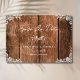 Este casamento de madeiras rústicas e locais salvos a data é uma maneira encantadora e romântica de deixar seus convidados saberem sobre seu dia especial. Ele apresenta um fundo de madeira com sutil textura de grãos, delicados sotaques de rendas, fazer perfeito para um casamento no país ou para casais querendo uma sensação quente e íntima. Use as ferramentas de design para atualizar o texto e a fonte. Também disponível em download digital.