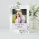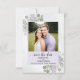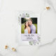 Este cartão de salvar a data do casamento é simples, rústico, elegante e lindo. Ele apresenta sua foto em uma moldura lavanda ou roxa clara cercada por uma profusão de folhas de eucalipto e flores de lavanda pintadas à mão em aquarela sobre um fundo azul aço pálido marmorizado. O título lê: Salve a Data em caligrafia com letra cursiva rendada com espaço para os nomes do casal, a data e o local. O verso tem um pequeno buquê amarrado com um laço branco. Uma maneira maravilhosa de deixar seus amigos e familiares saberem sobre o seu próximo casamento.