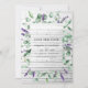 Convite de casamento rústico de campo com eucalipto e lavanda em verde folha com dólar de prata, com verso em burlap, projetado para ser personalizado rápida e facilmente de acordo com os detalhes do seu evento. Ideal para qualquer tema ou casamento de jardim.