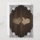 Casamento russo de verde-country salve o cartão de data com dois corações de burlap em um fundo de madeira enfeitiçada com folhagem de eucalipto e luzes de cordas. Dois corações de burlap e renda floral branca contra fundo de madeira rústica nas costas.
