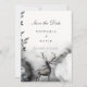 Convite de Casamento Salvar a Data Floresta Encantada. O texto é totalmente personalizável. Apresenta um cervo veado nos bosques em uma noite enevoada. Parte da coleção Encantada. Esta coleção apresenta cores escuras de outono com roxo, azul, cinza, preto, verde e mais. Tema de outono sombrio, rústico e gótico.