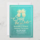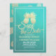 Guarde as Modelos de Cartão de Convite para Casamento - Casal de Abacaxi Ouro Faux Elegante em Rosas Verde Teal e Azul Turquesa Papel Floral para Damasco. Um Design perfeito para o seu grande dia. Todo estilo de texto, cores, tamanhos podem ser modificados para ajustado das suas necessidades!