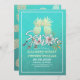 Guarde as Modelos de Cartão de Convite para Casamento - Casal de Abacaxi Ouro Faux Elegante em Rosas Verde Teal e Azul Turquesa Papel Floral para Damasco. Um Design perfeito para o seu grande dia. Todo estilo de texto, cores, tamanhos podem ser modificados para ajustado das suas necessidades!