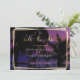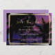 Casamento Save the Date | Casamento Noturno Tropical Exótico pela BarefootBride™ - Praia de Ilha Tropical ao Pôr do Sol - um conjunto de casamento de praia perfeito à noite - palmeiras exóticas com as ondas do oceano batendo na costa de uma praia intocada logo antes do anoitecer, quando o céu está todo iluminado em magenta, roxo e tons rosa brilhantes. Esta coleção apresenta uma forma geométrica dourada em estilo terrário descentrado com uma janela central esfumada e bordas de transparências variadas nas facetas para permitir que as palmeiras da Ilha Exótica e o fundo do pôr do sol sejam exibidos em uma variedade de formas e intensidades. Uma combinação de caligrafia dourada com um layout de texto minimalista e contemporâneo torna-o um conjunto de casamento de estilo tendência. Este é parte de uma coleção de papelaria de casamento com acessórios