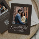 Este elegante "save the date" apresenta um texto "save the date" com inspiração retrô sob uma única foto em um fundo marrom rústico, juntamente com um texto personalizado simples. A parte de trás deste "save the date" moderno tem uma faixa marrom coordenada juntamente com uma foto horizontal, espaço para uma mensagem personalizada e um código QR para o site do seu casamento. Este design vertical é ótimo para um casal moderno e elegante e é uma ótima maneira para o casal engajado compartilhar informações do casamento com amigos e familiares. Encontre mais cores e estilos na coleção de Lea Delaveris Design. Também disponível como download digital de "save the date".