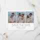 Anuncie seu casamento na praia com eterno elegância usando nosso casamento Simples da praia Foto Salve a Data. Apresentando uma design minimalista, este cartão mostra três fotos bonitas que capturam a essência da sua história de amor. Perfeito para casais que apreciam simplicidade e encanto, esta salva a data garante que seus convidados marquem seus calendários por um dia cheio de sol, areia e amor. Deixe seus momentos especiais brilharem com este design subestimado, mas espantoso.