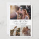 O moderno e elegante minimalista casamento de três imagens com grade de fotos salve o cartão de data com suas fotos de noivado personalizadas e um roteiro romântico de caligrafia com letra de mão. ++++++++++++++++++ Personalize-o com as suas fotografias e detalhes!