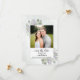 Este casamento para salvar o cartão de data é simples, rústico, elegante e bonito. Ele apresenta sua foto em um quadro branco rodeado por um bando de folhas de cor d'água pintadas manualmente, de eucalipto e flores de lavanda, sobre um fundo azul de aço pálido e marmoreado. O título diz: Salve a Data na caligrafia de script lacy com espaço para os nomes do casal, a data e o local. A parte traseira tem um pequeno buquê amarrado com um arco branco. Uma maneira maravilhosa de deixar seus amigos e família saberem sobre seu próximo casamento.