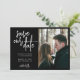 Casamento minimalista de fotos de noivado, salve a data em preto e branco simples com um moderno roteiro de caligrafia manuscrito. ++++++++++ Adequado para primavera outono de verão ou casamentos temáticos modernos na moda de inverno.