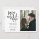 Casamento minimalista de fotos de noivado, salve a data em branco preto e claro com um moderno e manuscrito roteiro de caligrafia manuscrito. ++++++++++ Adequado para primavera outono de verão ou casamentos temáticos modernos na moda de inverno.