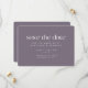 Este cartão Save the Date (Salvar a data) é uma forma sofisticada de anunciar seu dia especial aos amigos e à família. Projetado em tom de mauve mudo com tipografia moderna e limpa, ele expele elegância ao eterno. A placa apresenta detalhes personalizáveis, incluindo nomes, data, local e detalhes do seu site. Disponível como uma manutenção impressa ou um arquivo baixável, esta opção Salvar a data permite flexibilidade para atender às suas necessidades. Perfeito para casamentos, garante que seus convidados marquem seus calendários com bastante antecedência. Um design mínimo, mas na moda que reflete o seu grande dia com charme e classe!