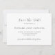 Convite de casamento elegante com design simples e minimalista com os detalhes do seu evento em fontes serifadas tradicionais e fontes de letra elegantes.