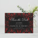 Salve a data com este casamento preto e vermelho elegante e preto preto, salve o modelo de data com belo fundo Damásico com texto de script. Toque em "personalizar este modelo" para adicionar o seu próprio texto personalizado.