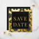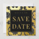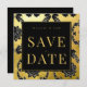Damasco preto e Dourado Regal Salve a data. Casamento. Elegante. Simples. Quadrada. Opção de download digital.