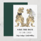 Delicie seus convidados com este engraçado convite de casamento temático de dinossauro, noiva e noivo T Rex. Fácil de personalizar com os nomes da noiva e do noivo e a data do casamento. Ilustrações divertidas da noiva e do noivo T Rex em aquarela com tipografia moderna. Arte original única da artista Catherine Sweetman