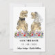 Delicie seus convidados com este divertido convite de casamento temático de dinossauros com noivos T-Rex em pé em um prado colorido de flores silvestres. Fácil de personalizar com os nomes dos noivos e a data do casamento. Ilustrações divertidas de noivos T-Rex com tipografia moderna e caprichosa. Arte original e única da artista Catherine Sweetman