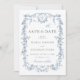 Reserve A Data Casamento Toile de Jouy Salvar Data Dusty Blue