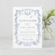 Uma chinoiserie salva o cartão de data com uma bonito trama floral desenhada à mão em tons azuis suaves e uma fonte moderna. Estes cartões de na moda são a forma perfeita de deixar a família e os amigos saberem a data do seu casamento. Par com qualquer coisa na coleção FLORIA para um olhar coeso.