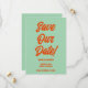 Este casamento moderno e retrô minimalista Salve a Modelo de Data é excelente para você. Se você está procurando um bonito, elegante e fácil personalização Casamento Salve a Modelo de Data. Um casamento muito elegante, simples e chic, laranja, salve a data. Que apresenta cor de laranja em negrito mínimo, salve a data tipografia em negrito sobre fundo verde plano. Com as iniciais personalizáveis do noivo e da noiva. Pegue este casamento de na moda, salve a data e faça seus convites realmente comprometidos.
