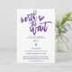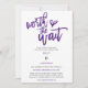 Porque quando as circunstâncias significam que infelizmente se tornou necessário que você mude a data do seu casamento, esta é uma maneira conveniente de deixar seus convidados saberem sua mudança de planos e nova data o mais rápido possível. Este design tipográfico tem um elegante roteiro de conjunto roxo no topo Worth the Wait com um motivo cardíaco. O resto do texto que está numa mistura de roxo e preto, você pode facilmente personalizar. As cores do texto e do plano de fundo em ambos os lados podem ser alteradas se você desejar por meio da opção Personalizar mais.
