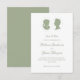 Clássico e elegante, Bridgerton inspirou, o casamento da regência verde. Personalize com seus nomes em uma fonte elegante e florescente de script e suas informações de casamento em uma fonte de serifa de chic. Projetado para combinar com nossa Coleção de Casamentos de Cameo Verde Clássica Regência.