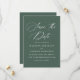 Anuncie seu casamento em estilo com nossos cartões salve a data modernos e elegantes. Apresentando "Salvar a Data" em uma caligrafia branca impressionante contra um fundo verde-escuro rico, esta design combina sofisticação com um toque de beleza inspirada na natureza. Os casais podem personalizar o cartão com seus nomes, data de casamento, local e site de casamento, todos exibidos em letras negrito e branco para uma aparência limpa e contemporânea. Simples, moderno e eterno, salvar a data é a maneira perfeita de dar o tom para sua celebração inesquecível.