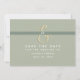Casamento verde simples, elegante, mínimo, moderno, não fotográfico, salvo o convite de data com ampersand dourado - monograma com iniciais.