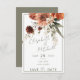 Este moderno, porém rústico, guarde o cartão de data com a design do local do casamento apresenta um buquê superior de pessegueira, ferrugem, terracota, flores castanhas e brancas. O fundo é verde-sábio com uma imagem verde-sage fina; o dorso é um terracota macio. Esta design faz parte da Rustic Terracotta Rust Flowers Wedding Suite de cartas criadas pela Simplesmente Farmhouse Press.