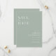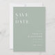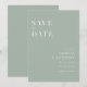 Casamento moderno salve o convite de data com design de tipografia minimalista elegante em cor verde de sábio. Personalize facilmente com todas as suas informações para cartões salve a data de casamento personalizados.