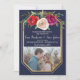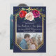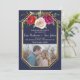 Isto salvou a data perfeitamente coordenada com a coleção de casamento Floral Radiante. A frente apresenta flores de cor d'água, cor vermelha, ameixa e creme de rosa + uma moldura dourada contra fundo azul marinho e uma foto da futura noiva e noiva. A parte traseira contém uma foto adicional. Entre em contato comigo se você quiser ajuda para personalizar esta data.