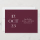 Compartilhe a data do seu casamento com uma elegância romântica e ousada usando este cartão minimalista de Save the Date em vinho escuro (também conhecido como ameixa borgonha). O impressionante layout editorial da data na frente faz uma declaração visual refinada, enquanto o verso apresenta espaço para uma foto completa do casal para adicionar calor e personalidade. O rico tom de vinho traz profundidade e sofisticação, tornando este design uma escolha linda para casamentos de outono e inverno, celebrações noturnas, locais de vinhedos e estética romântica moderna. Personalize os nomes, data, local e foto para torná-lo seu. Disponível como cartão impresso e download digital.