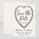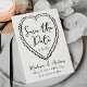 Anuncie o seu casamento com este retrorreflector e caprichoso cartão de data, com "Salvar a Data" em um roteiro preto manuscrito cercado por um coração desenhado à mão sobre um fundo de creme leve. Este design único combina elegância eterno com charme lúdico, fazer perfeito para casais que querem que o anúncio do casamento se destaque. Personalize o cartão com seus nomes, data do casamento e local para criar uma lembrança memorável para seus convidados e dê o tom para seu dia especial!