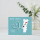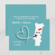 Um divertido save the date para casais que se casam em Portugal com um mapa de silhueta branca em teal com corações de amor vermelhos e tão fácil de personalizar com seus nomes e mensagem pessoal