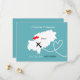 Um divertido save the date para casais que se casam em Ibiza com um mapa de silhueta branca de Ibiza em azul-turquesa com corações de amor vermelhos doces e muito fácil de personalizar com seus nomes e mensagem pessoal