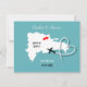Um divertido salvar a data para casais que se casam na República Dominicana, Hispaniola com um mapa de silhueta branca em azul turquesa com corações de amor vermelhos doces e muito fácil de personalizar com seus nomes e mensagem pessoal