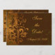 Convite de save the date com cartões planos para foto. Adicione um toque de elegância ao seu tema de casamento com cores de outono em chocolate ou castanho, dourado e verde com este sofisticado conjunto de papelaria para casamento e negócios. Apresenta redemoinhos e rolos clássicos em cores ricas, perfeito para ocasiões de outono.
