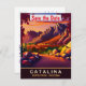 Convite de casamento Catalina save the date, cartão-postal de viagem. Vista para o parque estadual em cores vibrantes e quentes.