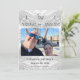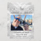 Católico Faux-Satin Monogrammed Save the Date design apresenta as iniciais da noiva e do noivo apresentadas juntas no centro superior com uma cruz em ambos os lados. Isto simboliza a união casal com Cristo e entre si. Sua foto é exibida como design principal. A parte traseira apresenta um lindo fundo faux-satin com a inicial do novo sobrenome casal largamente exibido no centro. Todo texto está em uma bela fonte prateada. Muito elegante.