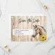 Uma bela pintura em aquarela de um cavalo cor de palomino / creme defumado / champanhe emoldurado por um fundo de madeira branca lavada em lime perlino composto por tábuas verticais que têm uma textura de madeira cinza carvão. O cavalo está olhando para a sua direita para o nome do casal que está se casando e tem belos girassóis florais amarelos ao redor do pescoço. Uma incrustação branca tem modelos para a sua redação personalizada e a parte de trás tem um fundo branco com outra flor de rosa e um modelo para informações adicionais, se necessário. Simplesmente exclua isto se não for necessário. Estes são ideais para uma festa de noivado ou chá de panela e são perfeitos para um casamento com tema country western.