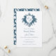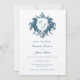 Um casamento equestre elegante salve a design de convite para data que faz uma escolha elegante e formal para qualquer celebração de casamento elevada ou outro evento equestre de luxo. Apresentando uma crista monográfica com as iniciais do casal (contacte-me se necessitar de ajuda para colocar o monograma) e texto totalmente personalizável para ajustado do seu evento. No verso está um padrão de acanthus vintage em branco em azul lacrimogêneo.