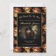 Esse casamento gótico Salve a data mostra um padrão de crânios assustadores flutuando em um abismo negro atrás do seu texto até a morte nos ajudar. Cada crânio é adorado com rosas vermelhas para sua ocasião romântica. Adicione sua foto de noivado. Os seus olhos vazios e sem alma são nitidamente contrastados contra a coroa gótico e buquês de flores mortos. Uma reviravolta engraçada e mórbida no casamento.